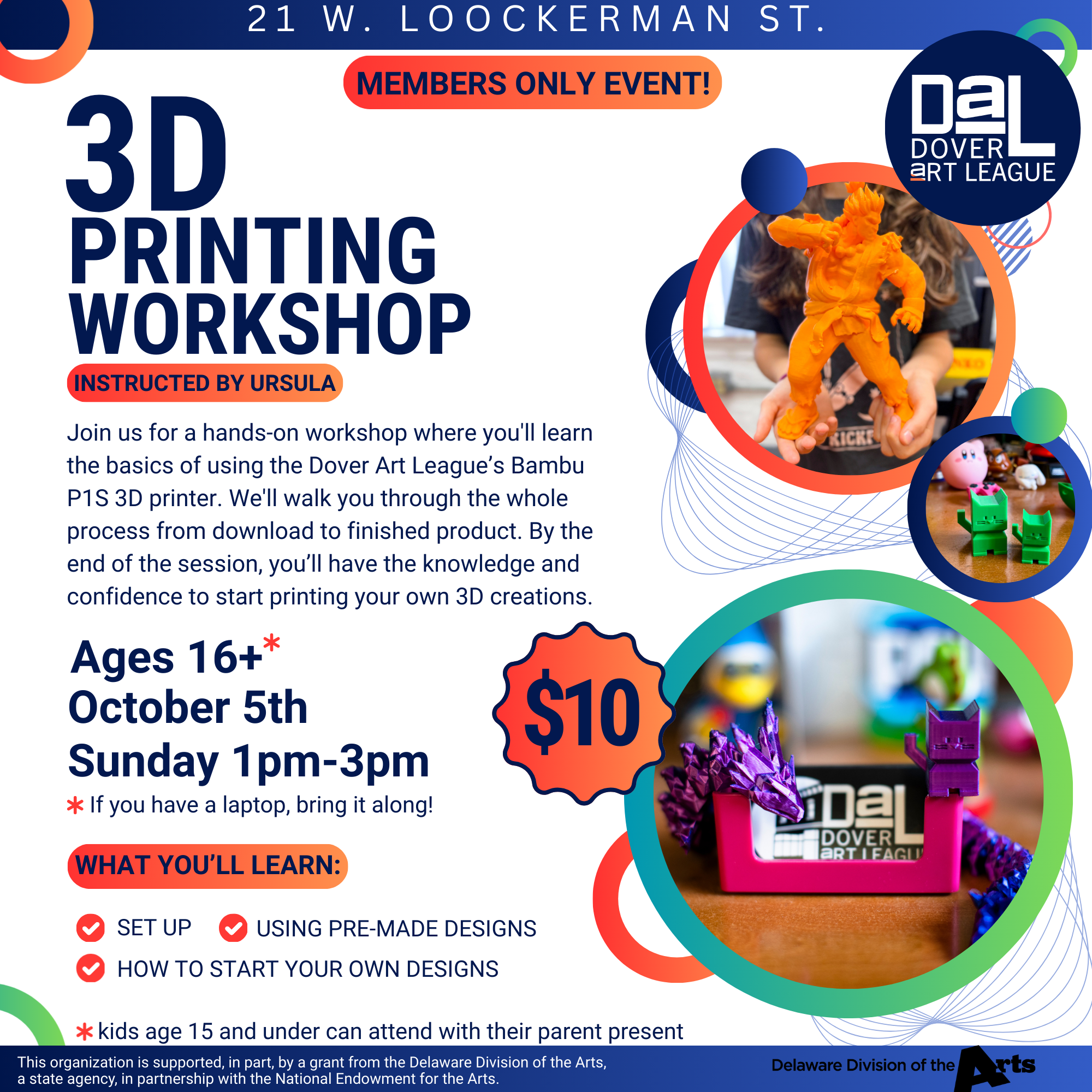 Unlock your creativity in the DAL’s Mini Member Makers Space, an exclusive perk for members. Begin with one of our fun intro workshops, then dive into open studio hours to bring your projects to life.